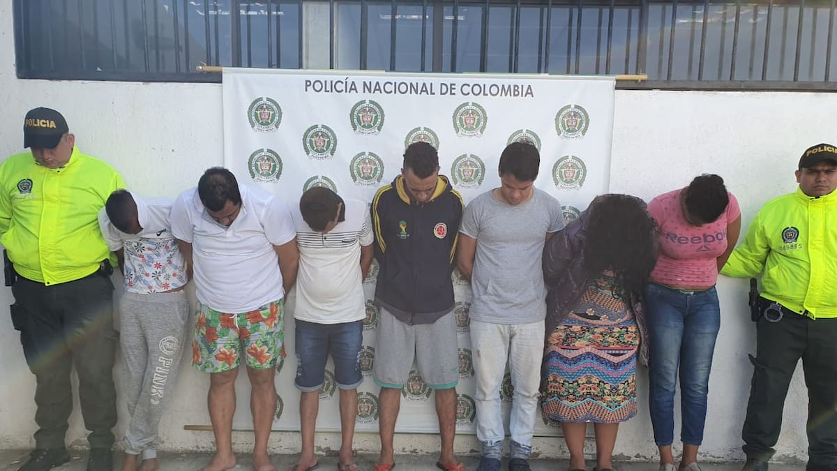 Los aprehendidos fueron José Javier Contreras Del Portillo, alias ‘El Viejo’; Kelvin Stick Ibarra Castañeda, alias ‘Negrocio’; Juliana Paola Martínez Zubiría, alias ‘La India’; Waldir Arturo Fernández Gallardo, alias ‘El Flaco’; Yesenia María Medina Flórez, alias ‘La Negra’; y Leonardo Andrés Guerra Oquendo, alias ‘El Universitario’.