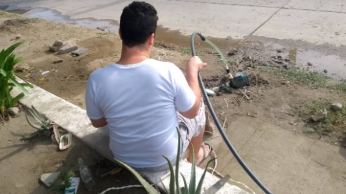 Si me pongo a esperar que me llegue el agua naturalmente o que me la regalen con carrotanques, me coge la noche, por eso opto por buscarla directamente de la red', confesó Cristian Lafaurie, del barrio Los Almendros.