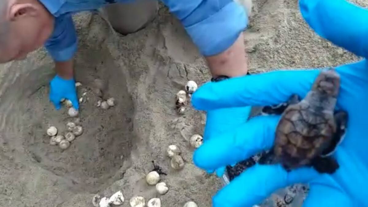 'Después de la exhumación del nido se encontraron los 67 neonatos, posteriormente se regresaron los huevos inviables, (neonatos muertos) y las cáscaras de los huevos eclosionados, para posteriormente cubrirlos con arena para su proceso natural de descomposición', anotó.