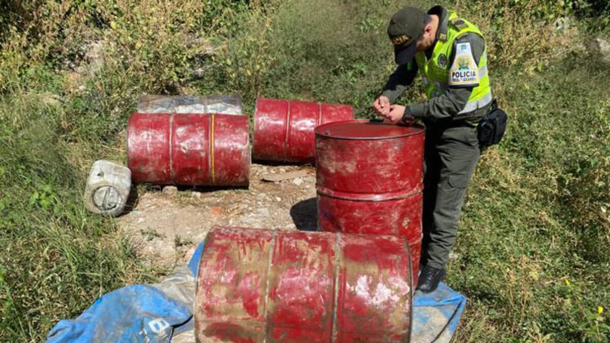Hasta este lugar llegaron los uniformados para dar con el hallazgo de 550 galones de hidrocarburo tipo ACPM, contenidos en canecas con capacidad para 50 galones cada una.