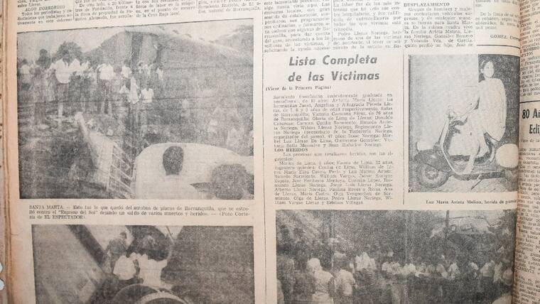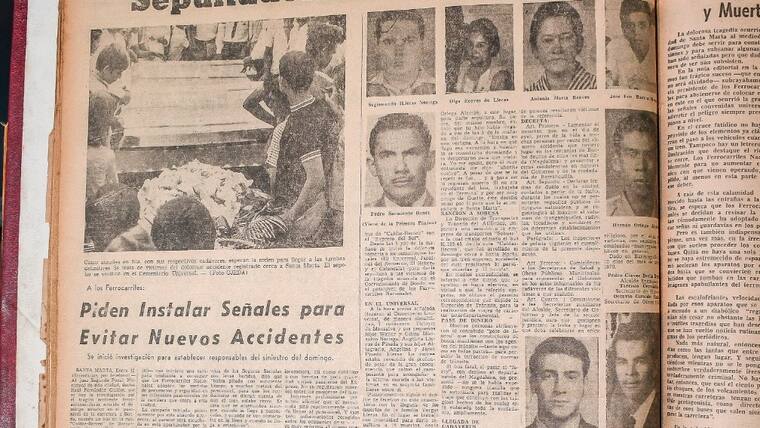 'Antes del choque las ‘peladas’ iban cantando el coro, ‘Caracolito del río, caracolito del mar, ándale y dile al amor mío, que canto por no llorar’. Los demás aplaudíamos. Ellas iban en la última banca y yo, en las sillas de la mitad del bus. Con el impacto salí volando, la embestida del tren fue violenta. Había un monte y por eso no vimos el tren. Nos cuentan que los vecinos recogieron en sus ollas domésticas los restos de nuestros familiares que quedaron regados por todos lados'.