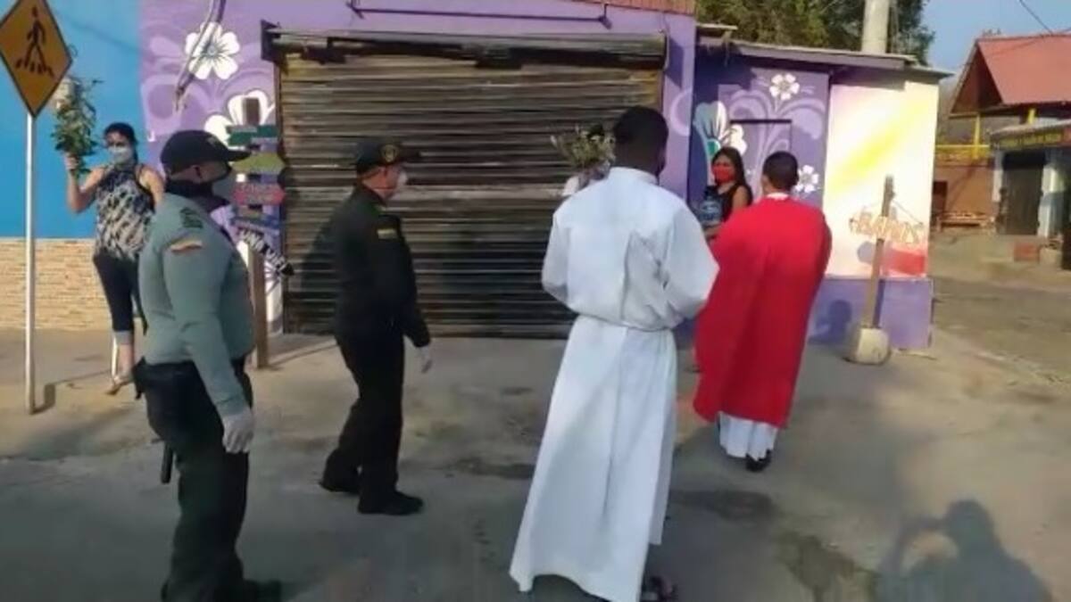 Uniformados de la Policía Metropolitana de Santa Marta junto con el padre Luis Alfonso Valencia, de la Parroquia San Francisco de Asís, recorrieron varias calles de la ciudad, bendiciendo y regalando ramos de olivo a los católicos, quienes agradecidos lo recibían en sus casas,desde sus puertas y ventanas.