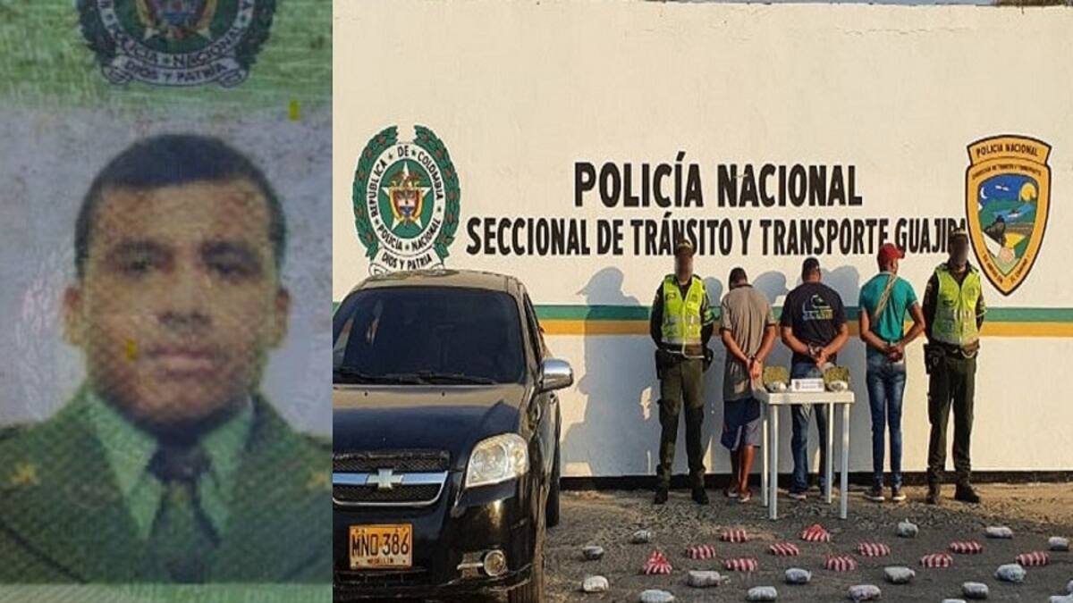 Policías de la seccional de Tránsito y Transporte de La Guajira que cumplían con labores de patrullaje sobre la Troncal del Caribe capturaron a tres personas, entre ellas un miembro de la Policía Nacional por transportar material estupefaciente.