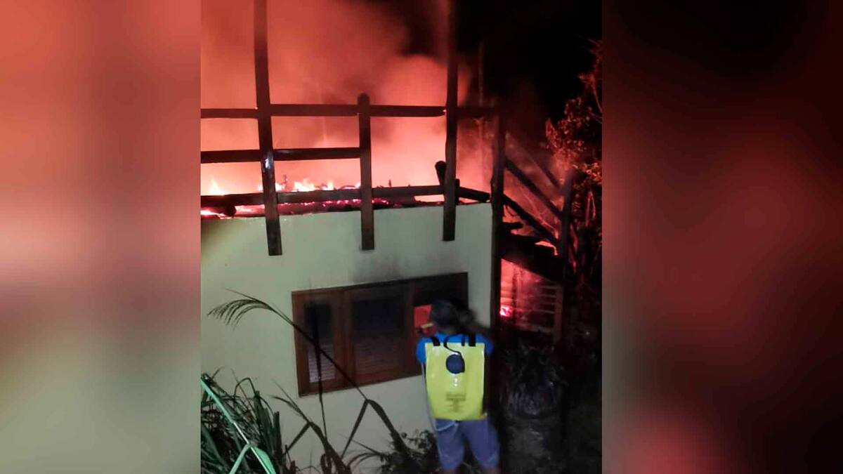 La cabaña destruida por el fuego está dividida en dos niveles, con capacidad para cuatro personas, el superior donde está la habitación para dormir, todo en madera, y el inferior donde se encuentra un área de descanso con hamacas y el cuarto de baño.