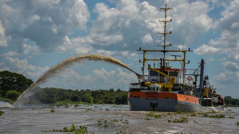 Desde este martes, y por un periodo de 45 días, se adelantan las labores de dragado que buscan frenar la erosión que se presenta en la margen derecha del río Magdalena y que ha afectado a los municipios de Salamina y El Piñón.