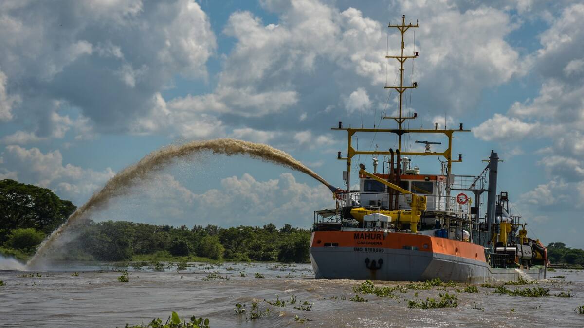 El capitán Luis Hurtado, líder de la draga Mahury, explicó que se esperan dragar un poco más de 300 mil metros cúbicos de sedimentos. Este material será utilizado para cimentar las zonas que se han derrumbado a causa de la erosión.