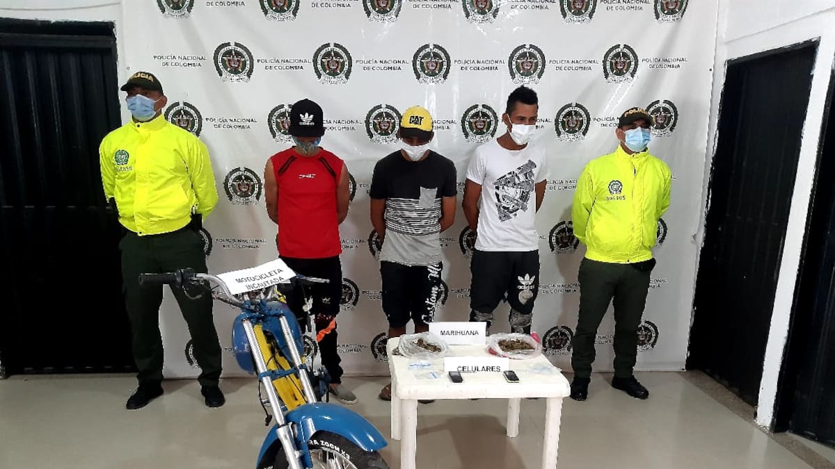 Igualmente, revelaron que los detenidos eran requeridos por concierto para delinquir, al igual que por tráfico, porte y fabricación de estupefacientes, siendo halladas cerca de 343 dosis de marihuana, dos teléfonos celulares y una motocicleta, la cual era utilizada, al parecer, para desplazarse y comercializar los alucinógenos.