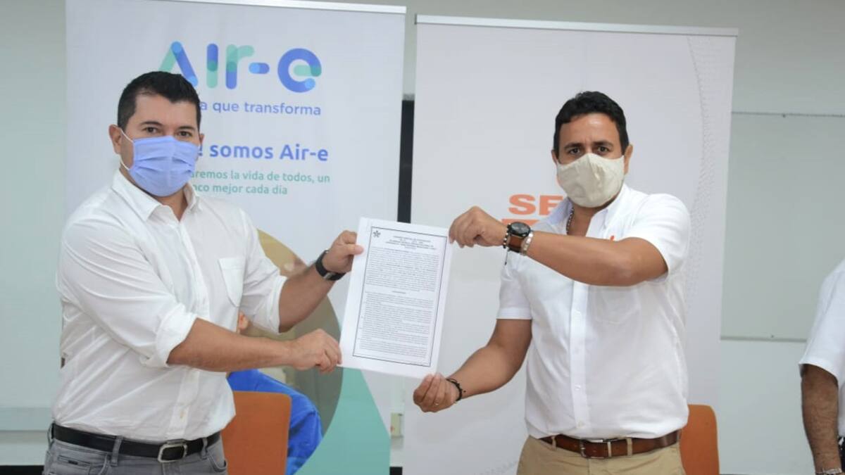 Con la presencia del Gerente General de Air-e, Jhon Jairo Toro y el Director SENA Regional Magdalena, Víctor Hugo Armenta Herrera, se protocolizó el convenio para convertir al Servicio Nacional de Aprendizaje en uno de los principales aliados de la compañía para suministrar la mano de obra necesaria para la puesta en marcha del plan de mejora del servicio en los departamentos de Magdalena, Atlántico y La Guajira.