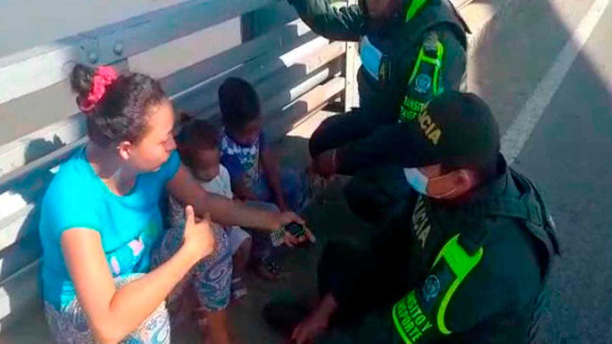 Los uniformados habían sido avisados por usuarios de la vía, que sobre la baranda de la estructura se encontraba una mujer 'desesperada y descontrolada', con la intención de saltar y que junto a ella, asidos de su mano, estaban un bebé de un año y otro pequeño de 4.