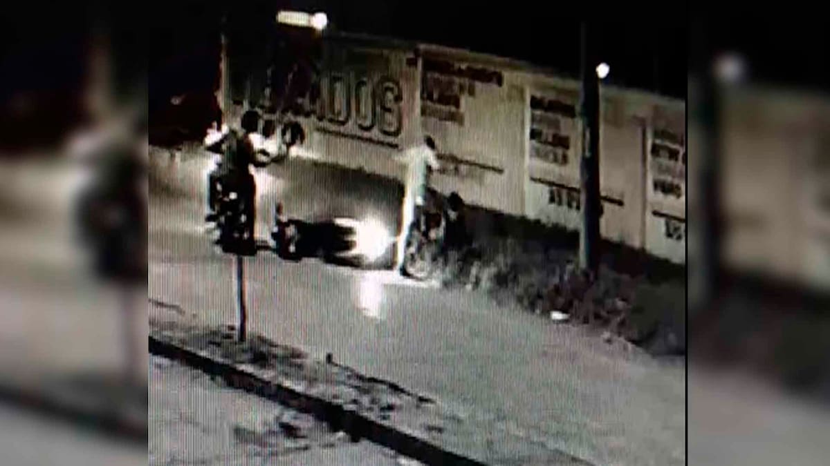 Se aprecia en las imágenes como delincuentes interceptan la motocicleta en donde viajan los jóvenes, los atacan con el arma blanca hasta hacerles perder el control de su vehículo.