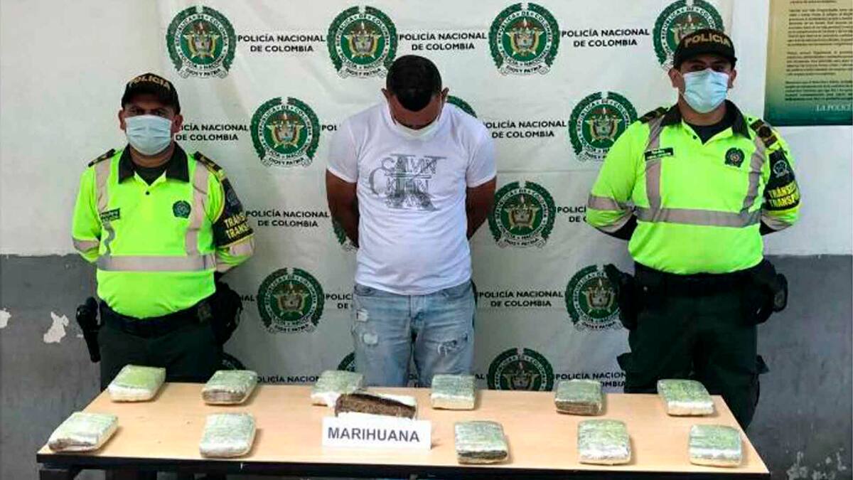 De la Hoz Gómez tomó una actitud sospechosa que llamó la atención de los uniformados, quienes al revisar su maletón encontraron 12 empaques prensados de marihuana.