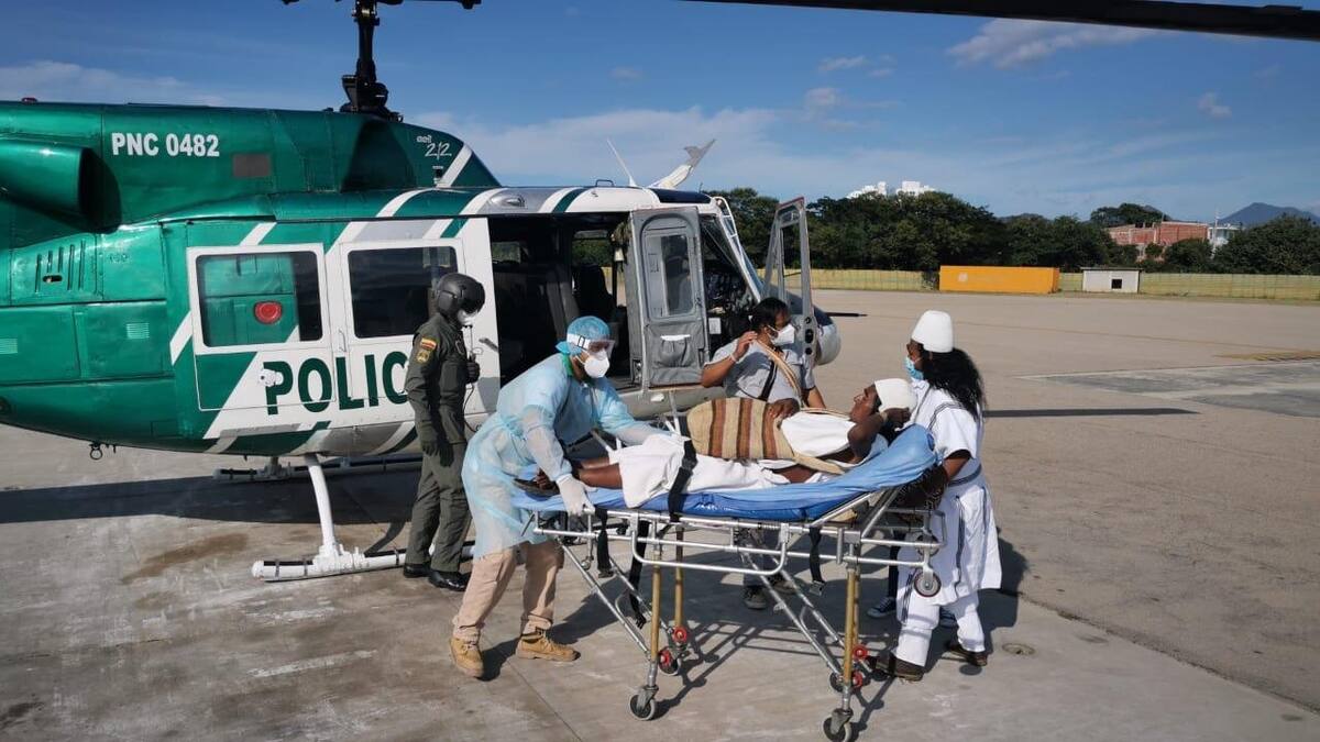 Una comisión médica de la Dirección de Antinarcóticos de la Policía Nacional logró la evacuación, vía helicóptero, de un indígena enfermo que estaba en un asentamiento en la Sierra Nevada de Santa Marta.