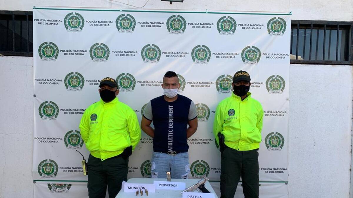 Durante el procedimiento, hecho en el barrio Ciudad Equidad, los investigadores de la Policía Judicial le confiscaron una pistola Prieto Beretta Calibre 9 milímetros y 15 cartuchos para la misma.