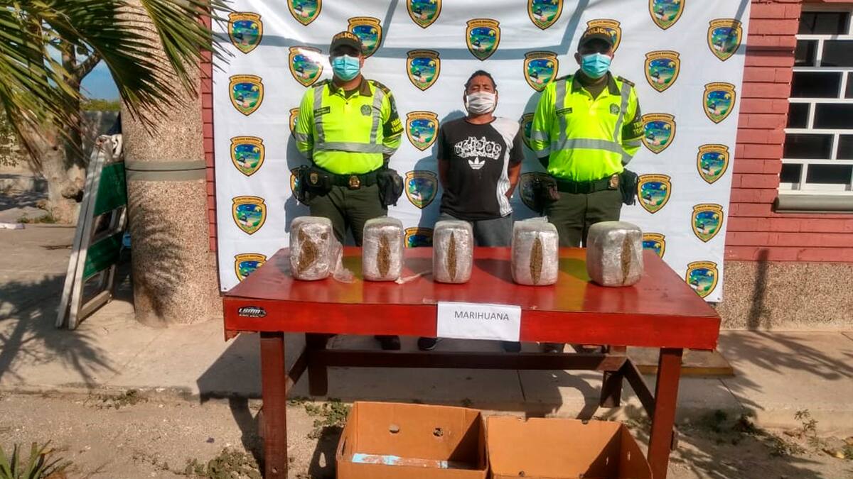 Patrulleros de la Seccional de Tránsito y Transporte de la Policía Metropolitana de Santa Marta detuvieron a Sady Stiwar Garcés Domínguez, de 18 años, con poco más de 22 kilos y medio de marihuana que llevaba en la bodega de un bus en el que viajaba como pasajero, el cual fue detenido para un registro en la Troncal del Caribe.