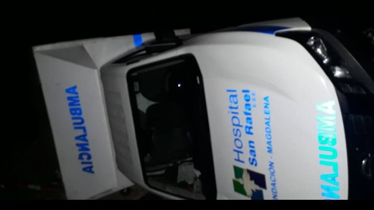 Una ambulancia que viajaba desde Bosconia (Cesar) hacia Fundación (Magdalena) sufrió un accidente de tránsito en la noche del viernes. Se conoció que dos personas resultaron heridas en el hecho.