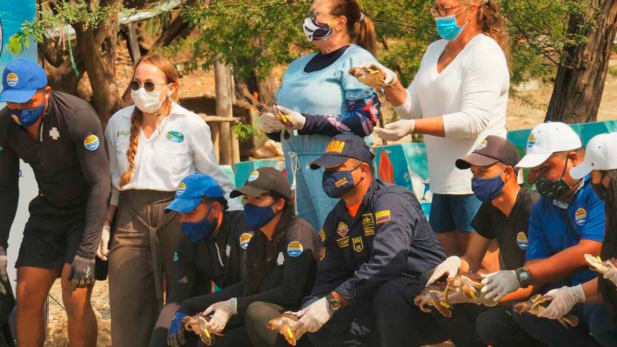 La Corporación Autónoma Regional del Magdalena Corpamag y el Acuario de El Rodadero, liberaron 106 tortugas marinas, que fueron rescatadas en el 2020 por el equipo de expertos del Centro de Atención de Fauna Marina.