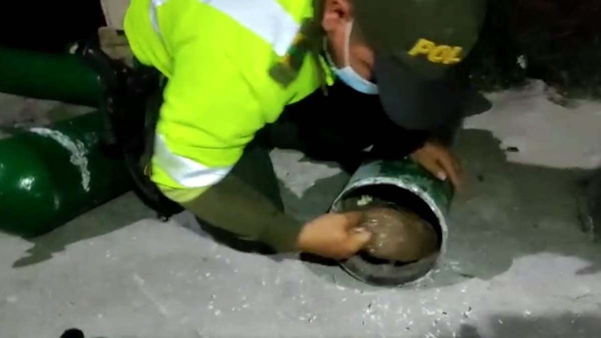 Una vez inspeccionada, los uniformados notan cuatro cilindros de color verde los cuales presentan deformidades en la parte superior y modificación en su pintura, despertando sospecha en su contenido.