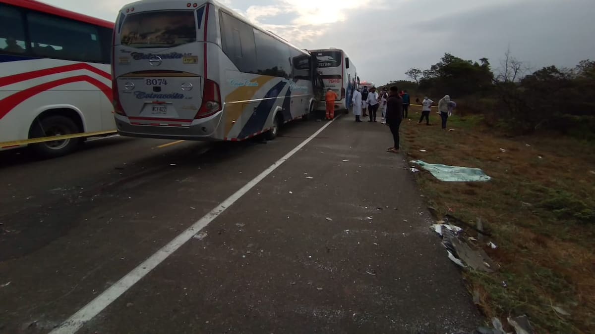Un aparatoso accidente ocurrido en la Troncal del Caribe cobró la vida de un hombre, identificado como Richard Manuel Cuadrado, mientras que Mauricio Cuadrado y Juan Francisco Ortega resultaron con lesiones después que un bus colisionara con la parte trasera de otro vehículo similar que estaba varado, al que los afectados empujaban.