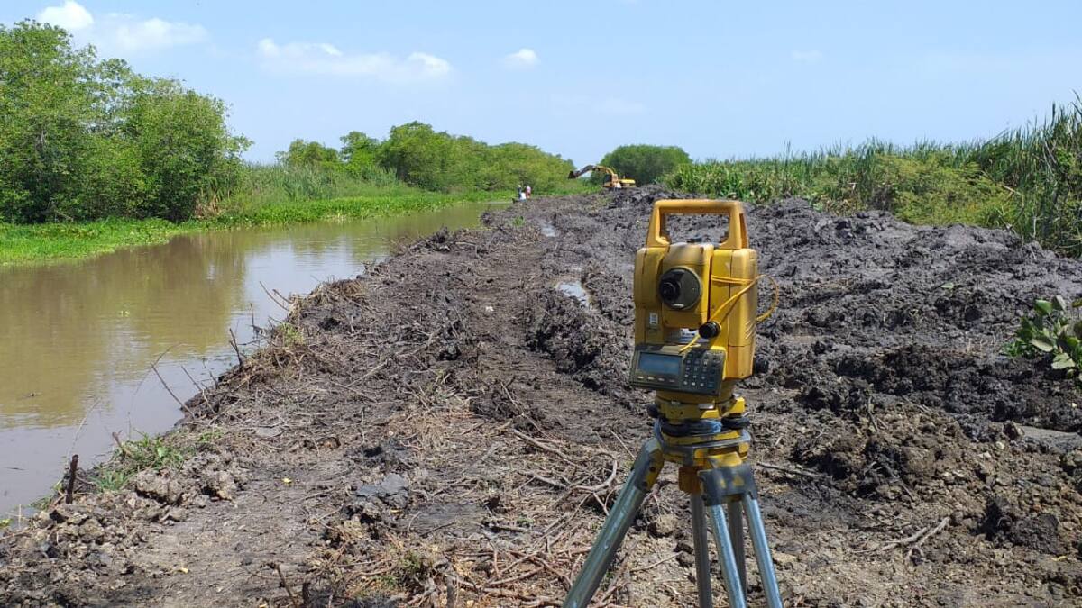 En Salamina, Corpamag adelanta obras dirigidas al trazado, replanteo topográfico y dragado mecánico de sedimentos en los Caños Roncador y Salvador, buscando la recuperación de sus condiciones hídricas y ambientales.