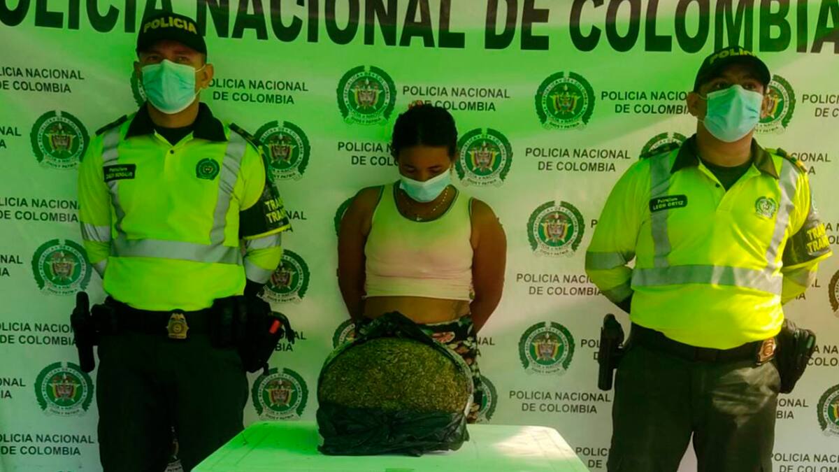 Patrulleros de la Seccional de Tránsito y Transporte de la Policía Metropolitana de Santa Marta detuvieron a Keila Teresa Garrillo Mollera, después de encontrarle 6.645 gramos de marihuana en su equipaje, mientras viajaba como pasajera en un camión, en jurisdicción de Ciénaga, Magdalena.