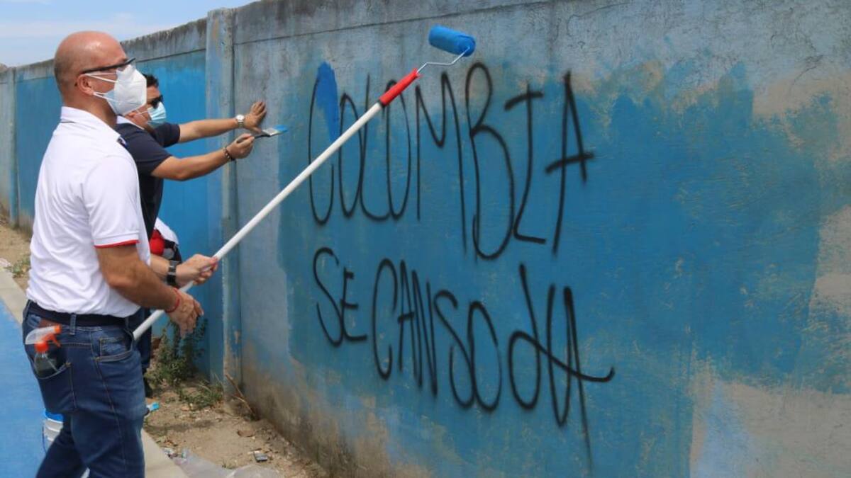 Grafitis pintados en las paredes externas de la Universidad del Magdalena, en los que en algunos se ofendía al rector Pablo Vera Salazar, fueron borrados por docentes, funcionarios y estudiantes, quienes los reemplazaron por un dibujo alusivo a la paz, solidaridad y el respeto por la academia.