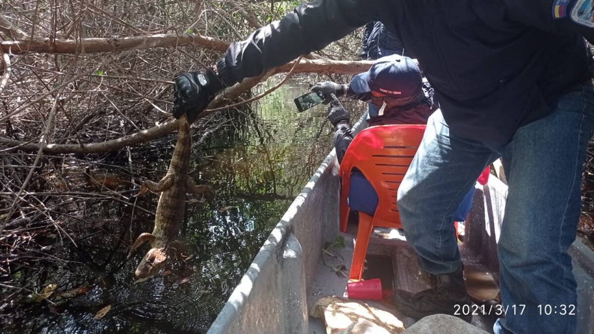 Los guardaparques se acercaron a una de las canoas de los pescadores de la región y notaron un saco al interior de la embarcación en donde algo se movía; procedieron a revisar y encontraron las babillas, las cuales fueron decomisadas de manera inmediata.