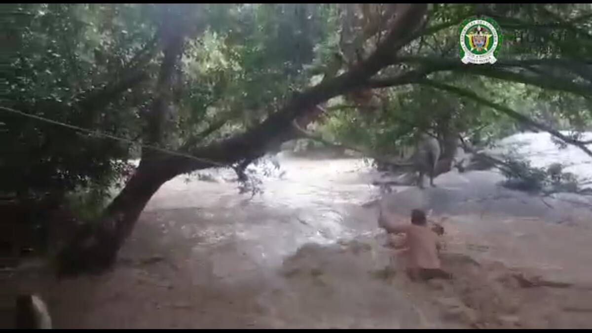 Uniformados de la especialidad de Carabineros y Seguridad Rural, de la Policía Metropolitana de Santa Marta, rescataron a dos turistas mujeres que quedaron atrapadas en una piedra en medio de una creciente súbita del río Gaira.