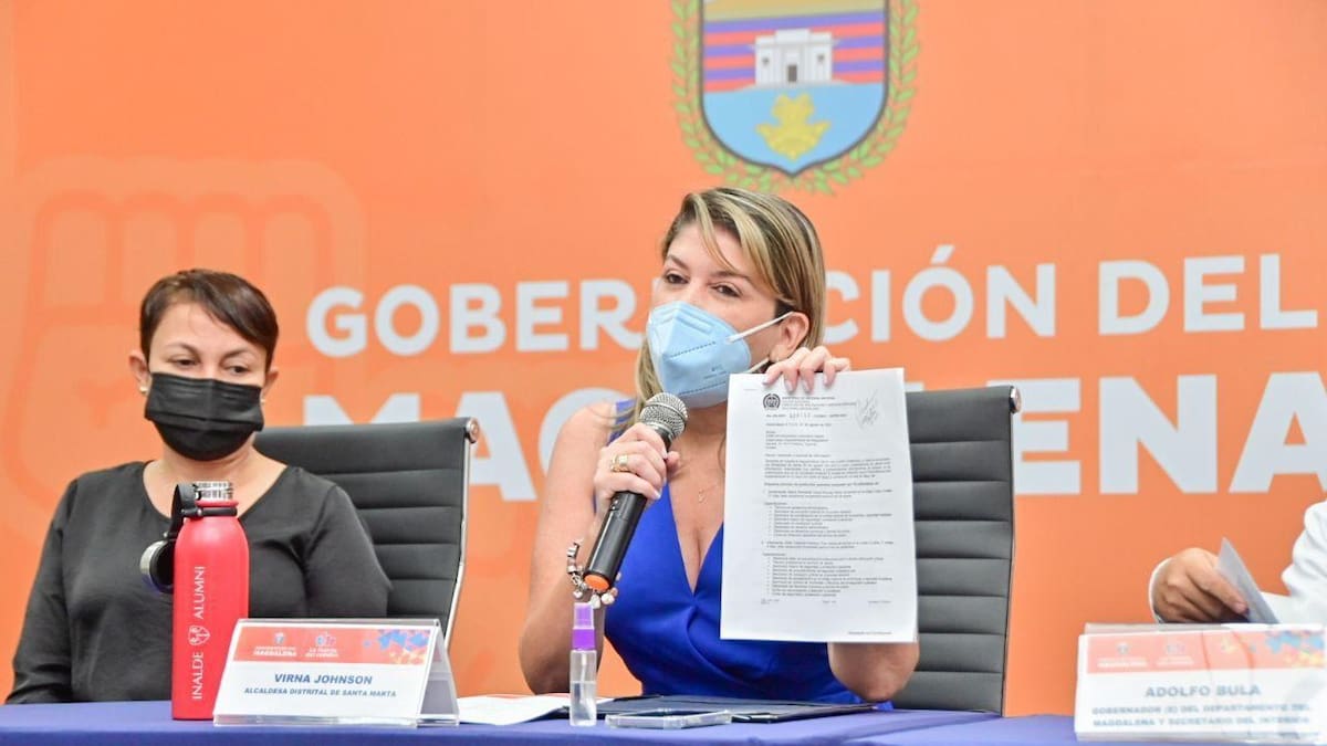 La alcaldesa de Santa Marta, Virna Johnson, en compañía del secretario del Interior del Magdalena, Adolfo Bula; director de la Oficina Jurídica, José Humberto Torres, y la hermana del gobernador, Patricia Caicedo; rechazaron de manera rotunda la supuesta información falsa suministrada por el Gobierno Nacional frente al plan orquestado para atentar en contra de la vida del gobernador Carlos Caicedo.