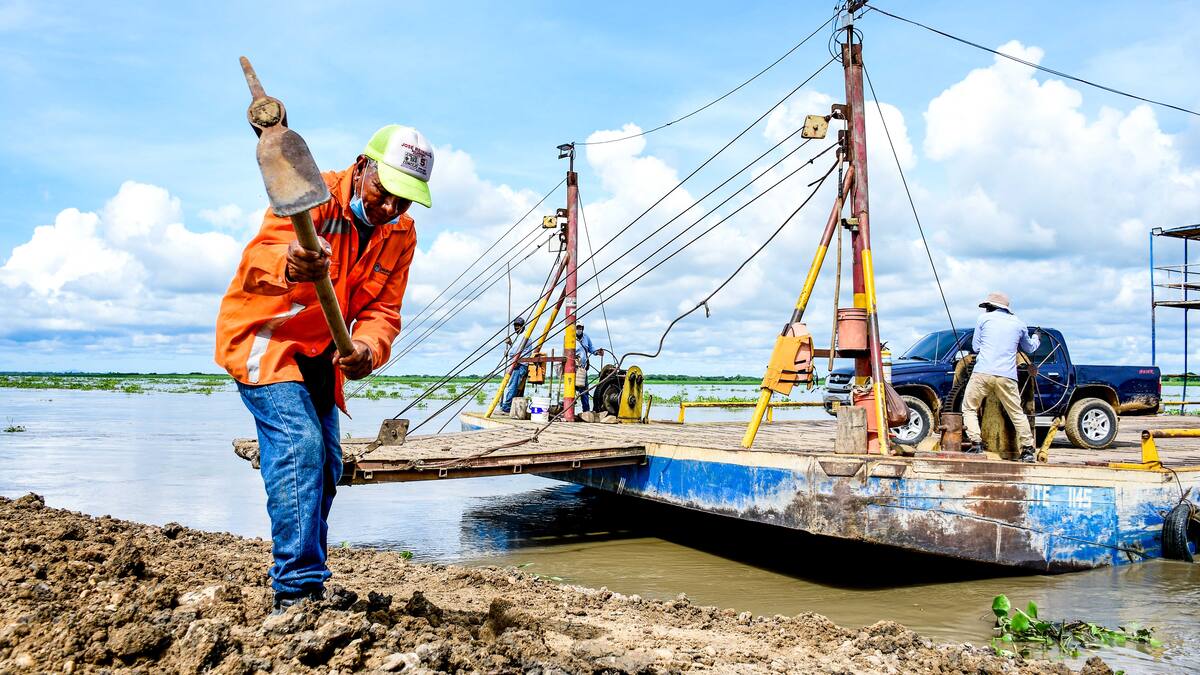 Es tan crítica y preocupante la situación que hay zonas donde el agua le llega a la cintura a las personas que laboran cerca del puerto. Los campesinos han alertado que en cualquier momento puede nacer un chorro y llevarse lo poco que queda, pero –a pesar de la emergencia– y de la desequilibrada lucha, día a día, noche a noche, buscan la forma de controlar el río para que su cotidianidad y su bolsillo no se vean afectados. Según sus cuentas, el río se ha devorado, al menos, seis metros del terraplén donde desembarca el ferry, un fenómeno que sigue en alza y que ya amenaza más hectáreas de cultivo y zonas donde pasta el ganado.