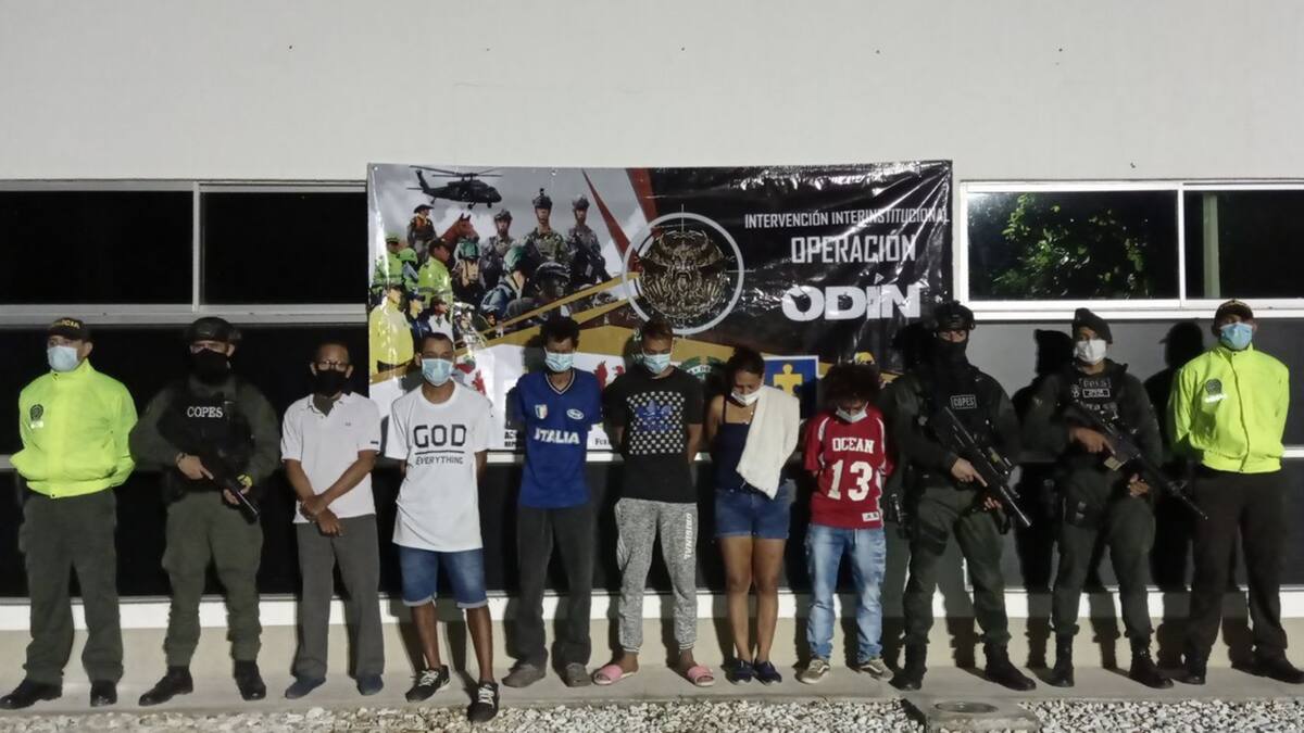 Los privados de la libertad fueron identificados como Alberto José Urueta Christofer, alias Cucho; Wilson Enrique Lineros Jiménez; Leider Germán Rodríguez Muñoz, alias el Mechudo; Fernando José Pertuz Mercado, alias Cantú; Libia Esther Badillo Molina, alias la Mona, y Luis Felipe Linero Badillo, quienes son señalados por los delitos de concierto para delinquir agravado y tráfico, fabricación o porte de estupefacientes.