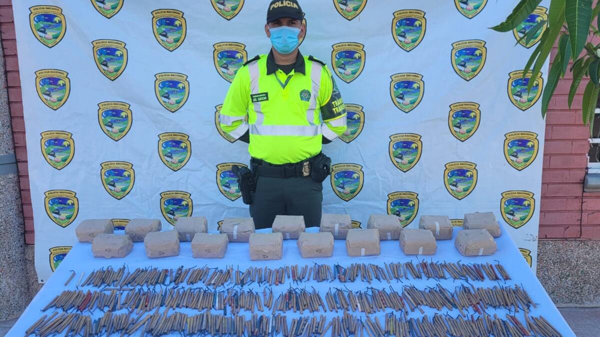 Uniformados de la Seccional de Tránsito y Transporte de la Policía Metropolitana de Santa Marta, realizaron la incautación de pólvora pirotécnica en un bus de servicio público en la Troncal del Caribe.