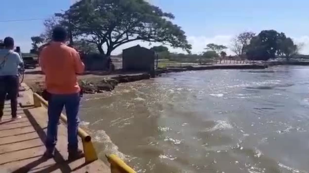 El desbarrancamiento del terraplén fue grabado por usuarios y comerciantes de la zona quienes observaron cómo un frondoso árbol y una caseta que servía de bodega cayeron al río.