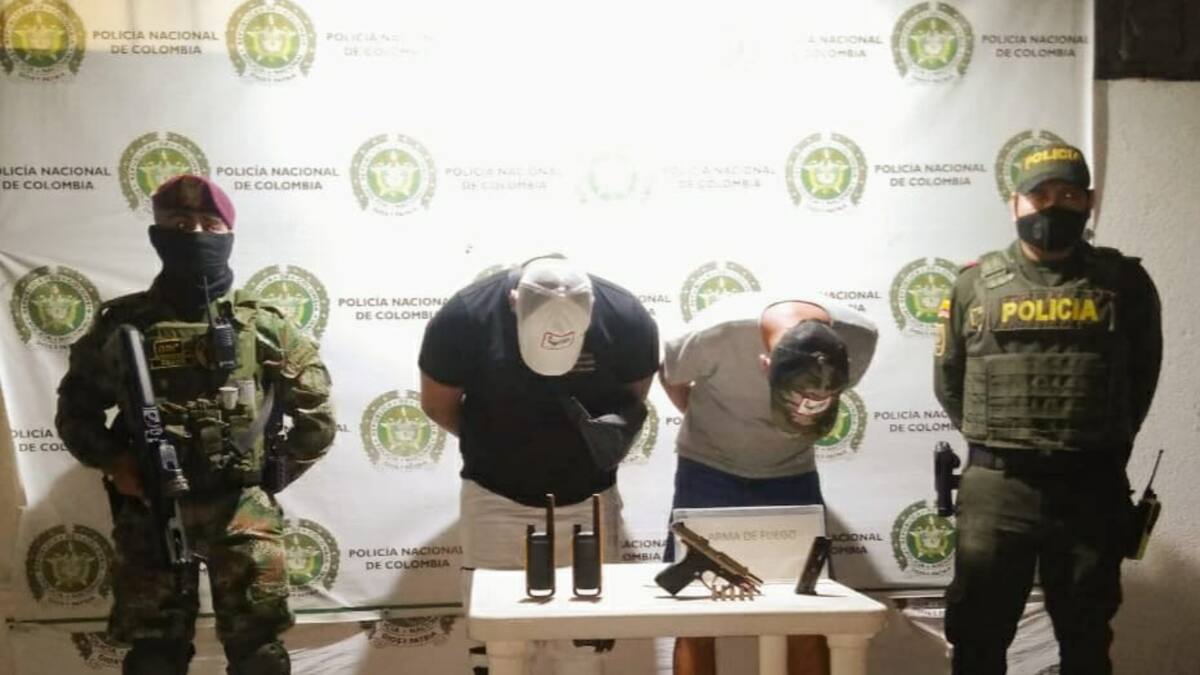 Uniformados de la subestación de Minca de la Policía Metropolitana en coordinación con efectivos del batallón de Alta Montaña del Ejército, capturaron a dos hombres en flagrancia con un arma de fuego sin documentación para su porte y dos radios en área rural de Santa Marta.