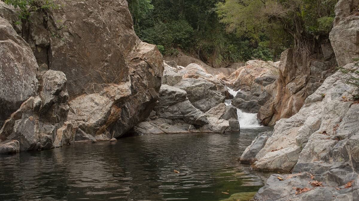 El sendero es de fácil acceso y tomará unos 40 minutos hasta llegar a una tranquila laguna alimentada por una pequeña cascada.