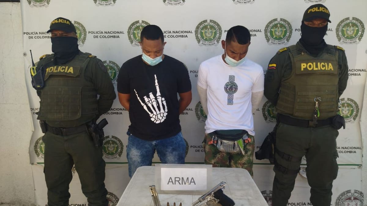 El grupo de reacción de la Policía Metropolitana capturó en flagrancia a dos hombres por el delito de fabricación, tráfico o porte de armas de fuego o municiones, en el perímetro urbano de Santa Marta.