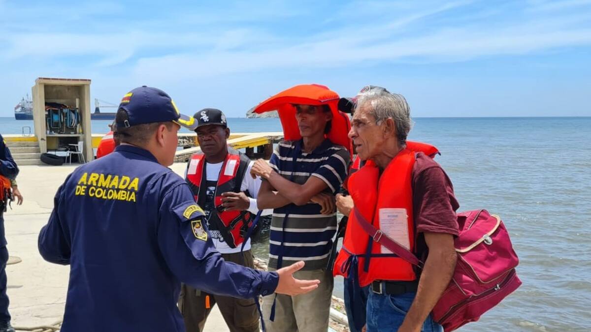 Personal de la Armada Nacional en coordinación con la Dirección General Marítima, rescataron a dos colombianos y tres dominicanos que estaban a la deriva en el mar en una embarcación en jurisdicción de Santa Marta.