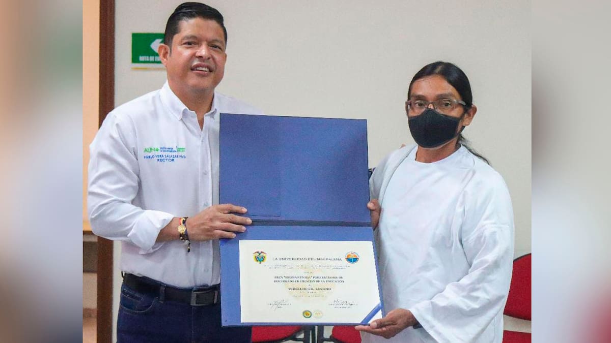 La Universidad del Magdalena entregó la ‘Beca Sierra Nevada’ al licenciado magíster, indígena, Virgilio Gil Lozano, docente catedrático de la Institución, para cursar un Doctorado en Ciencias de la Educación.