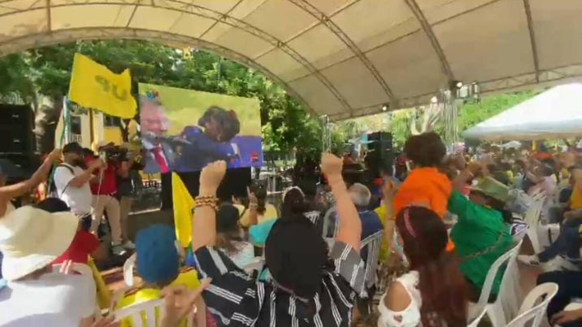 El Parque 'Santander', o 'De los Novios', en el corazón del Centro Histórico, sirvió de escenario para que los samarios observaran, a cielo abierto y en pantalla gigante, el acto de posesión del nuevo presidente de Colombia, Gustavo Petro Urrego.