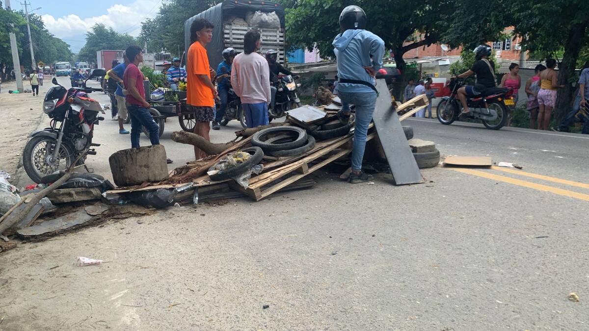 Con palos, colchonetas, cajas y otros elementos, la comunidad se dispuso a taponar la vía, impidiendo el tránsito vehicular.