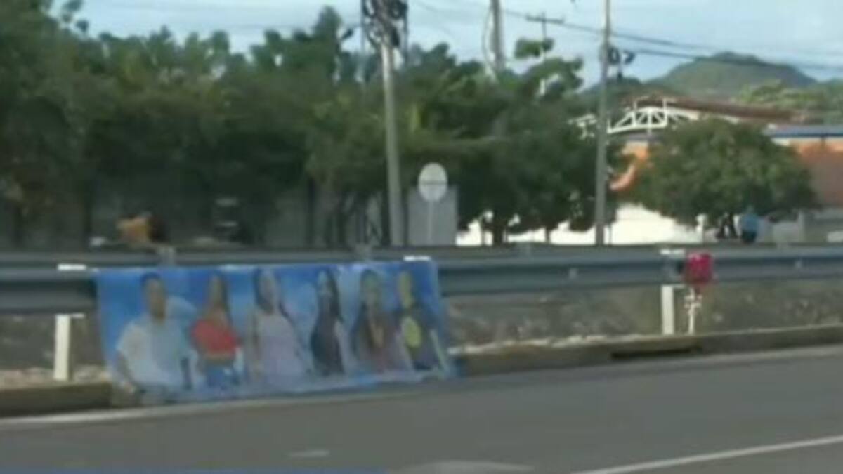 Igualmente en el sitio del accidente, sobre las barandas de protección de la vía, colgó las fotos de las víctimas.