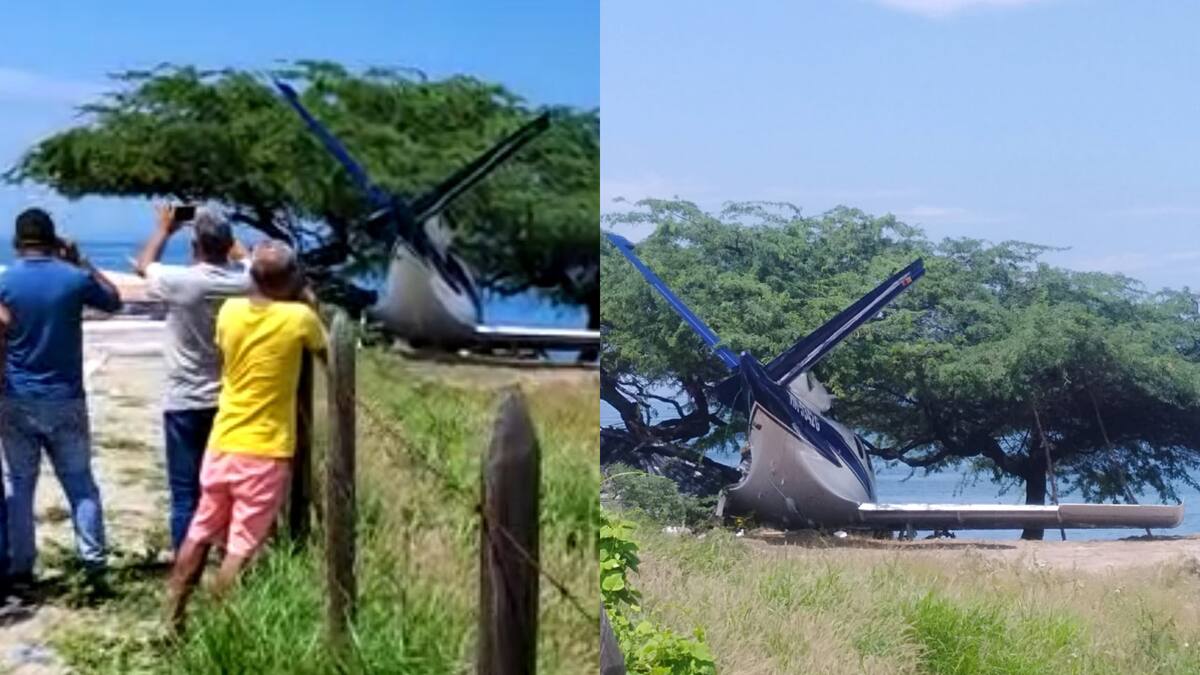 Momentos de pánico se vivieron en al aeropuerto de Santa Marta por causa de una avioneta que, cuando trataba de aterrizar, se salió de la pista y de no ser por un árbol con el que chocó, termina sumergida en el mar.