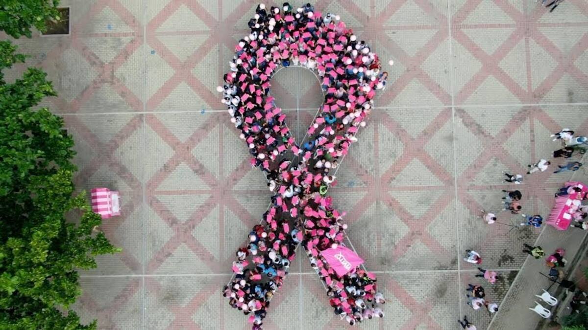 Un gigantesco lazo humano rosa, se elaboró en la Universidad del Magdalena, como un símbolo para demostrarle al mundo la importancia de detectar tempranamente el cáncer de mama y cultivar hábitos de vida saludables para su prevención.