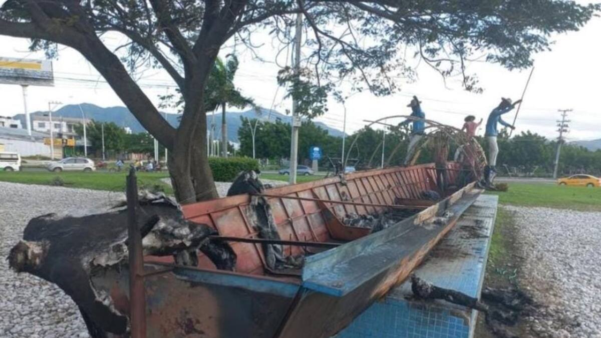 La alcaldesa de Santa Marta, Virna Johnson, lamentó el incendio del monumento 'La Piragua', y pidió el apoyo ciudadano para dar con la identidad y ubicación de los autores