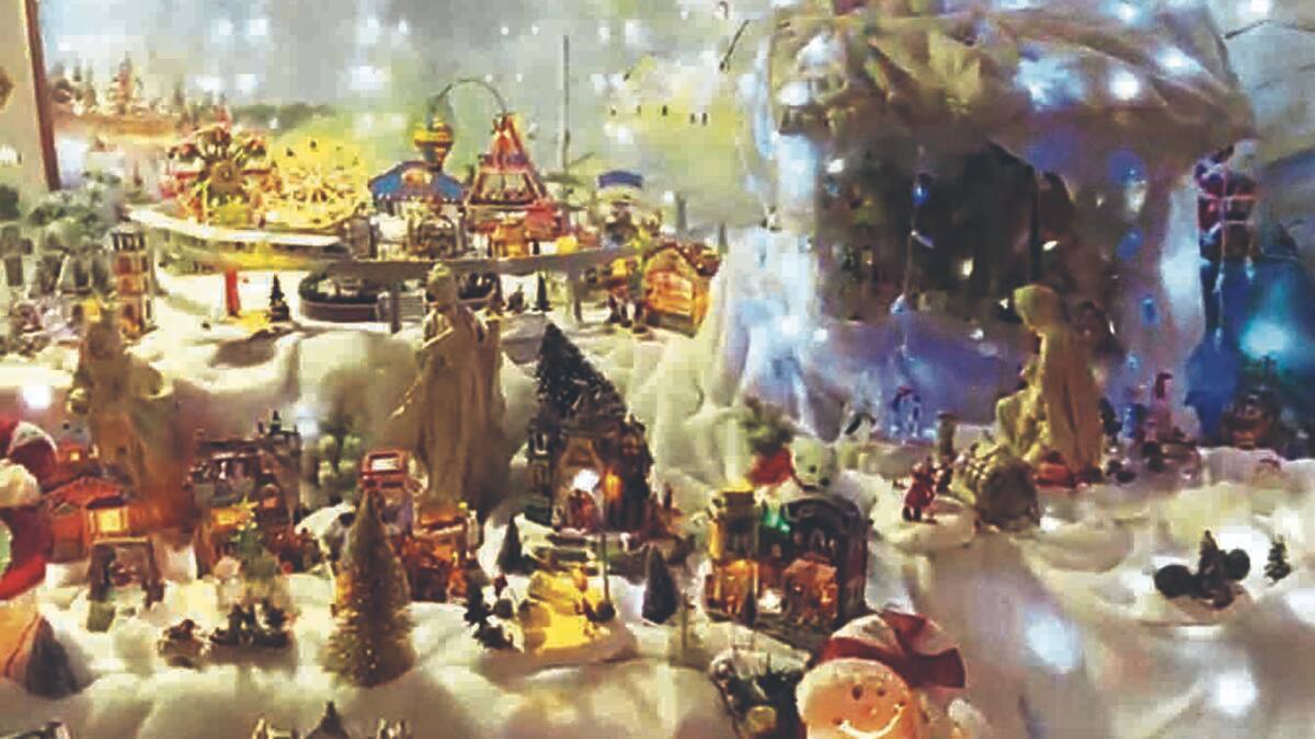 El luminoso árbol navideño es el límite con el comedor, en donde la mesa y sus sillas están forradas con telas alusivas al nacimiento de Jesús. A un costado de esta hay una enorme y luminosa ciudad de nieve que, con especial dedicación y esmero, ella diseñó.