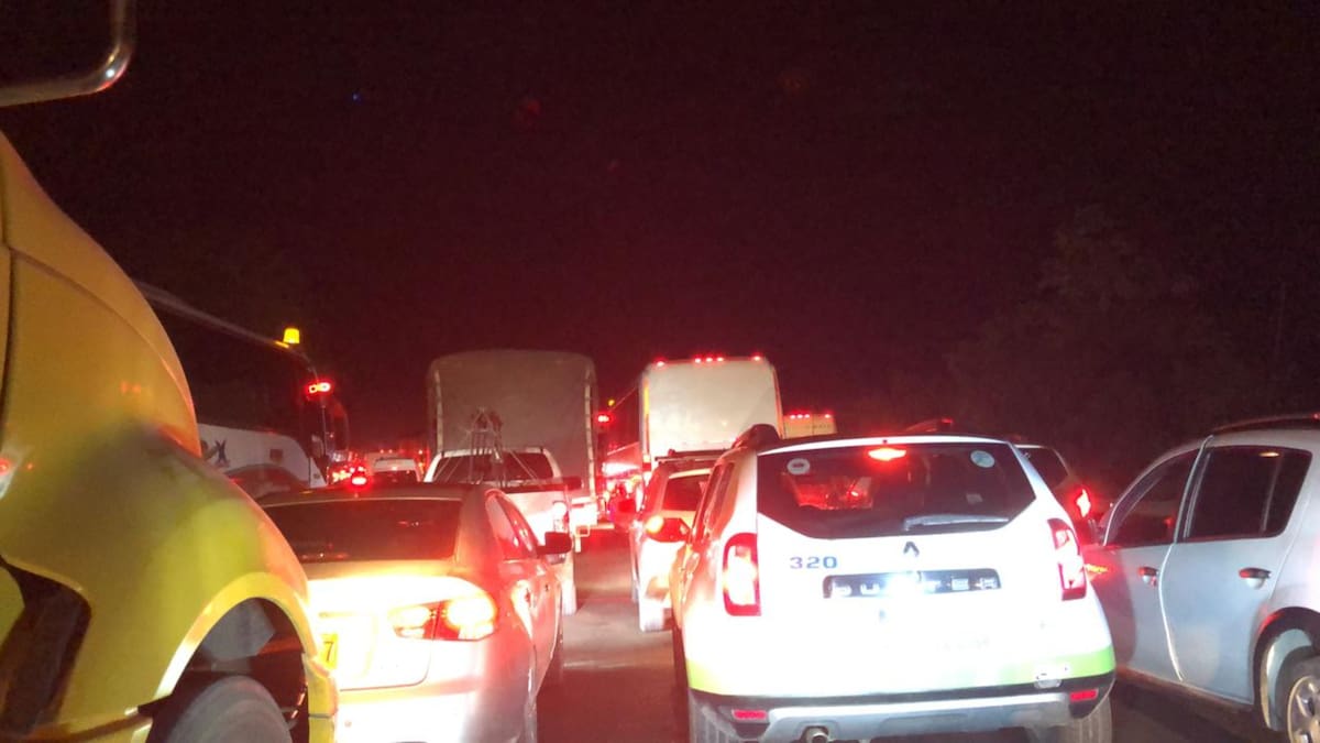 Según el reporte, los carros llevan más de cuatro horas en un trancón y a la espera de poder movilizarse para llegar a sus lugares de destino.