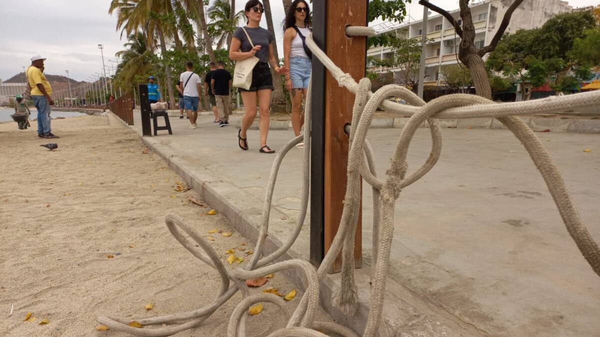 El recién remodelado Camellón de la Bahía, el cual es considerado vitrina del turismo nacional e internacional, sufrió actos de vandalismo en su cáñamo y en los pilotes de madera, los cuales fueron colocados para demarcar la zona peatonal de la playa.