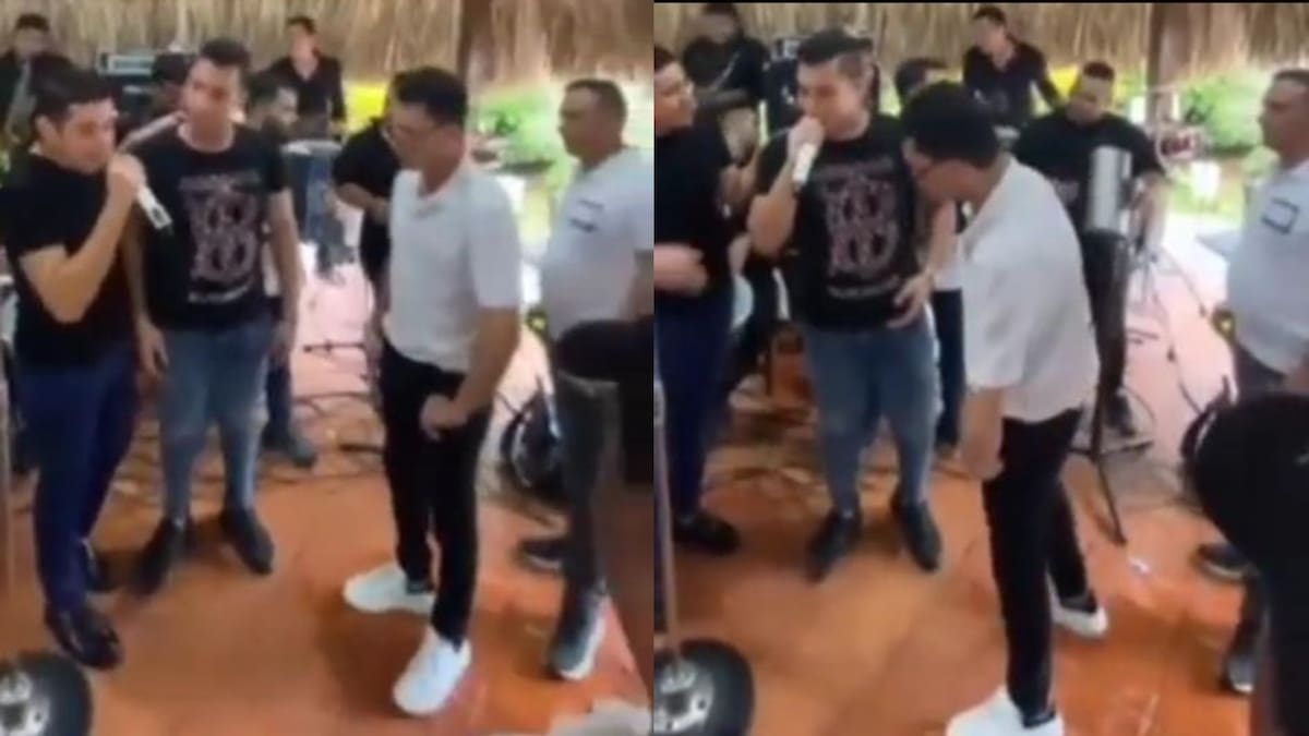 En las imágenes que circulan a través de redes sociales se puede ver al mandatario tambaleándose de un lado para otro, con la cabeza gacha, al tiempo que lo acompañan los dos cantantes de la agrupación de música vallenata mientras cantan.