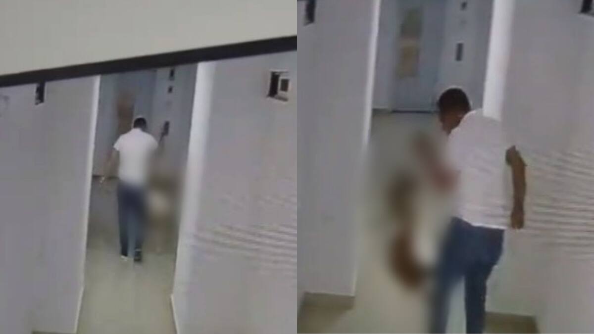 Las imágenes revelan cómo el dueño del perro, en un pasillo del edificio, emplea una fuerza excesiva al tirar repetidamente del collar del animal, llegando incluso a apretarle el cuello.