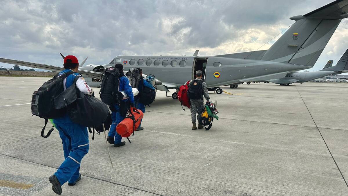 'En coordinación con el Centro Nacional de Recuperación de Personal- CENRP, el Comando Aéreo de Transporte Militar – CATAM trasladó en una aeronave King- 350 a un personal de tres rescatistas calificados de la Cruz Roja Colombiana y equipos de salvamento hasta el CACOM 3, donde posteriormente se inició una mesa de coordinación de emergencia para el rescate', detalló la FAC en un comunicado.