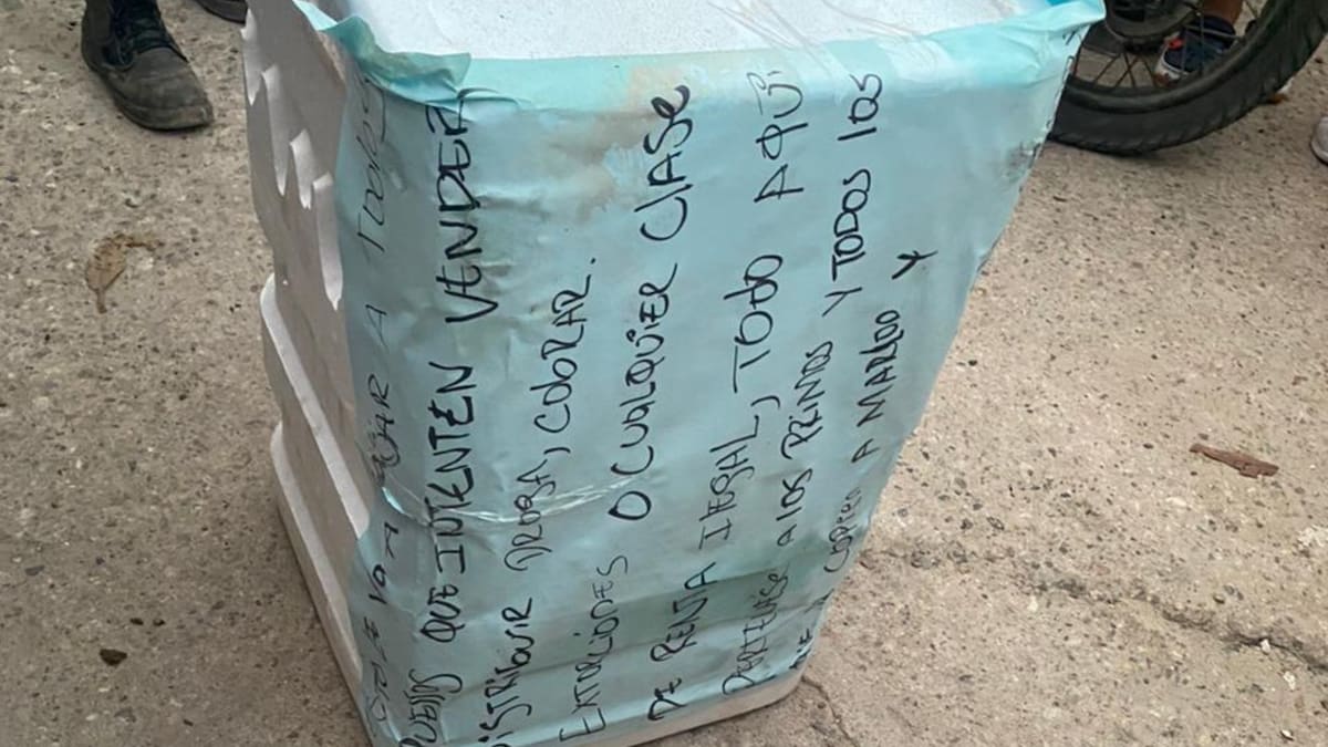 “Esto le va a pasar a todos aquellos que intentan vender droga, cobrar extorsiones o cualquier clase de renta ilegal…”. Eso decía una parte del mensaje escrito en una cartulina de color verde que rodeaba la cava de icopor que fue abandonada por desconocidos en una calle del municipio de Fundación, en el Magdalena, y que dentro de este recipiente para mantener el frío había el cuerpo de un hombre desmembrado.